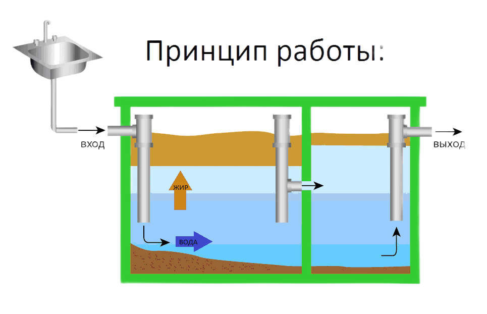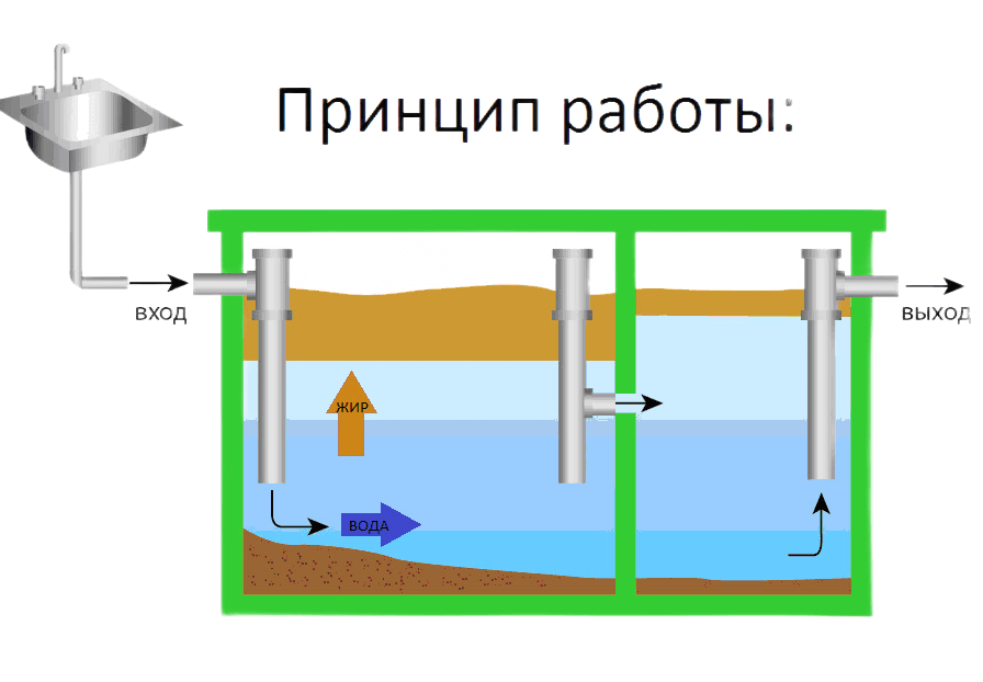 3. Жиры накапливаются в специальной камере для последующего удаления, а твёрдые примеси остаются на дне устройства, которые тоже необходимо со временем убирать.